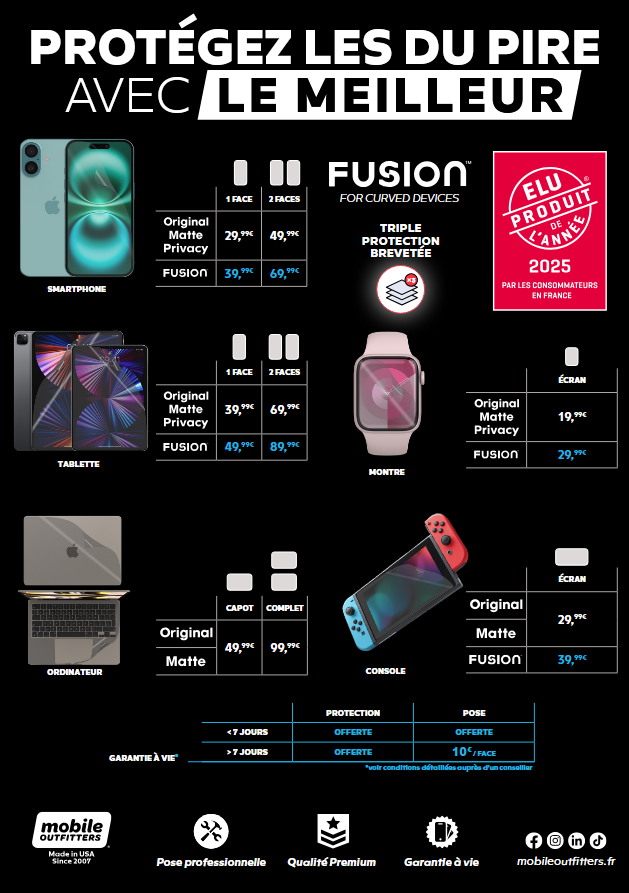 Phénix Phone est heureux de vous proposer via son partenaire Mobile Outfitters un concept de protection révolutionnaire qui peut s’adapter aussi bien sur les Smartphones, montres, tablettes, Consoles, appareil photo etc…